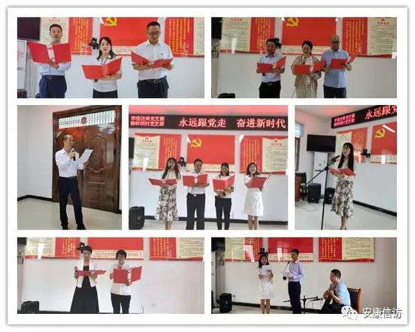 活動(dòng)現(xiàn)場(chǎng),大家面對(duì)鮮紅的黨旗,重溫入黨誓詞,再次以錚錚誓言激勵(lì)自己,不忘初心、牢記使命,對(duì)黨忠誠、為民務(wù)實(shí),永遠(yuǎn)跟黨走。大家先后朗誦詩歌《沁園春 雪》《同一首歌》《我是中國人》《黨的贊歌》《我們永遠(yuǎn)跟黨走》,分享了黨史小故事《藏在衣柜里的父子情》,帶來了《祖國我永遠(yuǎn)熱愛您》《唱支山歌給黨聽》《小白楊》,吉他彈唱《故鄉(xiāng)梨花又開放》等膾炙人口的歌曲。同時(shí)還穿插了黨史知識(shí)有獎(jiǎng)問答和“你比我猜”兩個(gè)互動(dòng)環(huán)節(jié),推動(dòng)機(jī)關(guān)黨員干部與基層黨員干部的互動(dòng),增進(jìn)了黨史學(xué)習(xí)。通過傳唱紅色經(jīng)典,銘記黨恩,堅(jiān)定信仰,錘煉黨性。
