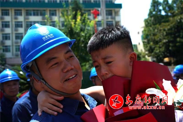 11時許,搶險車隊在漢濱騎警的護(hù)送下,緩緩駛?cè)牍鹃T口,在陣陣掌聲中隊員們依次走下?lián)岆U車,他們個個精神飽滿、笑容燦爛。“熱烈歡迎國網(wǎng)安康供電公司抗洪援豫突擊隊的英雄勝利歸來!”“英雄們辛苦了!”……在儀式現(xiàn)場,迎接人員為公司突擊隊隊員們拉起橫幅、鼓掌歡呼。