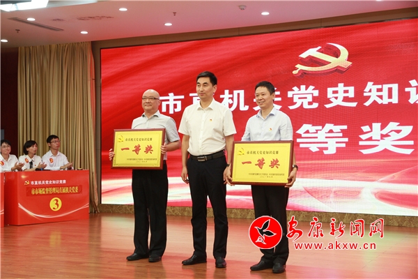 決賽分為個人必答題、團隊共答題、搶答題、風險題四個環(huán)節(jié),通過抽簽的方式確定比賽座次。比賽的過程中,還穿插了觀眾答題互動環(huán)節(jié)。經(jīng)過緊張的四個環(huán)節(jié)比拼,最終,市委辦機關黨委代表隊、市委黨校機關黨委代表隊榮獲一等獎,市市場監(jiān)督管理局直屬機關黨委代表隊、市住建局直屬機關黨委代表隊、市政府辦機關黨委代表隊、市委政研室機關黨支部代表隊獲得二等獎。