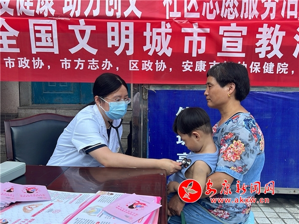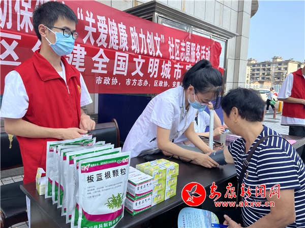 活動現(xiàn)場,醫(yī)務(wù)人員為社區(qū)居民聽診、測量血壓,耐心地詢問他們的身體狀況并進(jìn)行健康指導(dǎo),免費(fèi)發(fā)放了板藍(lán)根顆粒、藿香正氣水等常用藥品。向前來義診的居民發(fā)放健康宣傳資料,講解了高血壓、糖尿病、婦女兒童健康保健知識以及定期檢查身體的重要性,倡導(dǎo)居民積極樂觀的生活態(tài)度,養(yǎng)成健康生活習(xí)慣。