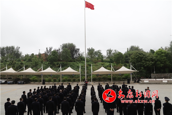 9時(shí)整,升國旗儀式正式開始。全體干警精神飽滿,整齊列隊(duì),護(hù)旗手邁著矯健的步伐將鮮艷的五星紅旗護(hù)送至升旗臺(tái)。伴隨著雄壯嘹亮的國歌聲,五星紅旗冉冉升起,全體干警莊嚴(yán)肅立,向國旗行注目禮。