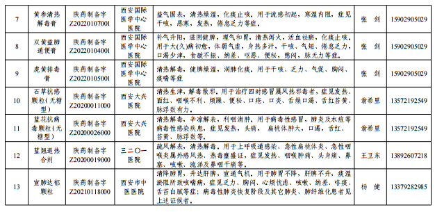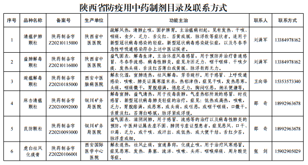 一是全市具有相關(guān)調(diào)劑品種使用需求且符合資質(zhì)的醫(yī)療機(jī)構(gòu)均可從《陜西省防疫用中藥制劑目錄及聯(lián)系方式》(詳見附件)中的醫(yī)療機(jī)構(gòu)購(gòu)進(jìn)目錄中的13種制劑產(chǎn)品,調(diào)劑使用時(shí)間從發(fā)文之日起至 2023年6月30日。