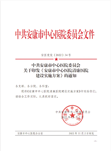 記者:2022年11月2日,安康市中心醫(yī)院黨委印發(fā)了《安康市中心醫(yī)院清廉醫(yī)院建設實施方案》。今后一個時期,醫(yī)院如何圍繞方案,全面推進清廉醫(yī)院建設,切實把清廉要素融入全方位推動醫(yī)院高質(zhì)量發(fā)展全過程各方面,營造風清氣正的政治生態(tài)和良好發(fā)展環(huán)境?