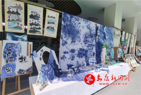與此同時,每個班的孩子們用紙、筆等材料表達著自己的奇思妙想,青花瓷、剪紙、水墨、泥塑、紅黃藍暢享……一幅幅手工作品展現(xiàn)著他們對美好的期待。