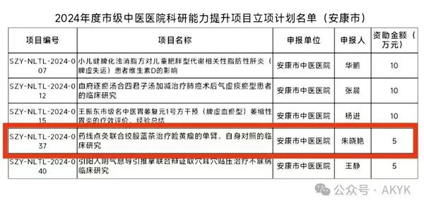 立項二:藥線點灸聯(lián)合絞股藍茶在黃素瘤應用項目獲陜西省中管局市級中醫(yī)醫(yī)院科研能力提升項目(朱曉艷、袁銘悅)
