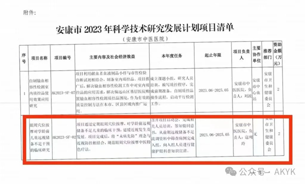 立項三:穴位按摩在遠視儲備項目中應用獲安康市科技局項目(寇列玲、栗鎣)