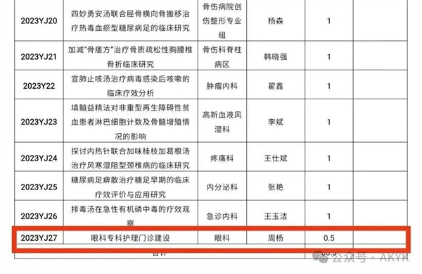 立項四:眼科專科護理門診建設與臨床實踐研究(周楊)