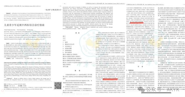 (一)參與中國中西醫(yī)結合學會、中華中醫(yī)藥學會、中華醫(yī)學會主持的《兒童青少年近視中西醫(yī)結合治療指南》項目