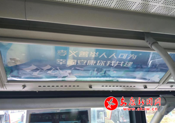 走進(jìn)安康城區(qū)7路公交車廂,印有“孝義善舉人人可為 幸福安康你我共建”等標(biāo)語映入眼簾,車廂內(nèi)的公益廣告宣傳氛圍濃厚,將孝義善舉潛移默化地浸潤(rùn)到乘客心底。