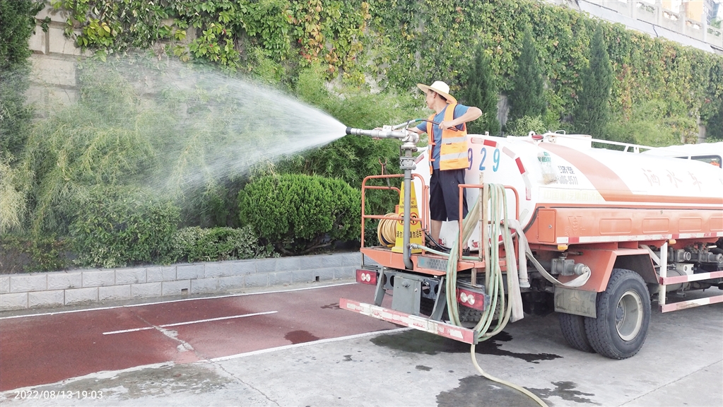 該處采取澆水、松土、修剪措施,黨員干部沖鋒在前,用行動(dòng)詮釋責(zé)任,用奉獻(xiàn)展示擔(dān)當(dāng),用“市政橙”扮靚“城市綠”,抗旱護(hù)綠一線黨旗紅。分區(qū)分段補(bǔ)水,全覆蓋抗旱護(hù)綠。該處采取“分區(qū)域、分時(shí)段、分批次澆灌”方式,對(duì)中心城區(qū)主次干道、公園廣場等公共綠地進(jìn)行抗旱保苗作業(yè)。堅(jiān)持水車澆灌、人工管灌和設(shè)施噴灌等綜合作業(yè)方式,嚴(yán)格落實(shí)“車輛全上、設(shè)備全開、晝夜加班、全力以赴”的工作要求,按照細(xì)澆漫灌、澆足澆透的原則,日均出動(dòng)抗旱澆水人員60余人次、灑水車20余臺(tái)次,應(yīng)澆盡澆,確保162萬平方米公園綠地的綠化苗木得到充分補(bǔ)水。松土遮陰保濕,全要素抗旱護(hù)綠。針對(duì)行道樹、灌木帶、草坪及地被植物的不同受旱程度和耐旱能力,加大澆灌頻率,對(duì)易旱和新栽苗木進(jìn)行重點(diǎn)澆灌,并適時(shí)除草、松土、圍堰,防止土壤板結(jié),增進(jìn)土壤蓄水保濕能力;在漢江大橋主橋及北頭轉(zhuǎn)盤等草坪綠地采取自動(dòng)噴灌系統(tǒng)和人工拉管澆灌結(jié)合作業(yè),不留死角盲區(qū),全方位做好抗旱保綠工作,確?购当C缧Ч。錯(cuò)時(shí)錯(cuò)峰養(yǎng)護(hù),全方位抗旱護(hù)綠。錯(cuò)峰作業(yè),錯(cuò)時(shí)澆水,避開城市交通高峰期,避開高溫時(shí)段澆水,減少植物水分蒸發(fā)。同步組織專業(yè)技術(shù)人員對(duì)綠化養(yǎng)護(hù)、夜間澆水等作業(yè)情況進(jìn)行檢查指導(dǎo),發(fā)現(xiàn)問題現(xiàn)場立即整改,確保做到抗旱不停步、保綠顯成效。