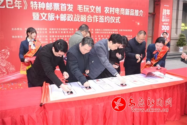 首發(fā)活動在安康學院學生一支歡快雀躍的串燒街舞中拉開序幕,安康郵政今年將己發(fā)行的生肖郵票結(jié)合安康地方文化宣傳元素,創(chuàng)意設計《生肖集!芳乜,現(xiàn)場為《生肖集!芳乜ā埬晗盗忻娈a(chǎn)品新品發(fā)布、“味在安康”電商禮盒等揭幕,進一步推動全市文旅事業(yè)發(fā)展。