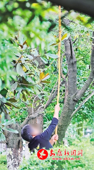 市民拿著長桿在景區(qū)附近采摘果實(shí)ajA安康新聞網(wǎng)
