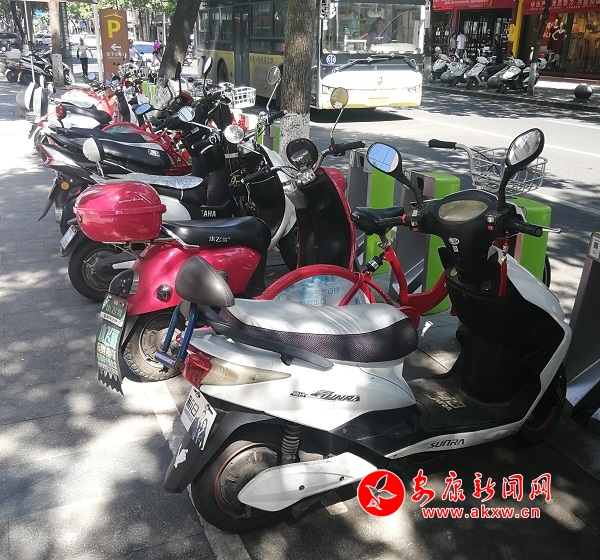 本網(wǎng)訊(記者 牟慶紅)7月31日,記者在興安中路一商城門前發(fā)現(xiàn),大量摩托車、電動車扎堆停放在城市公共自行車樁旁,使得公共自行車無法?俊