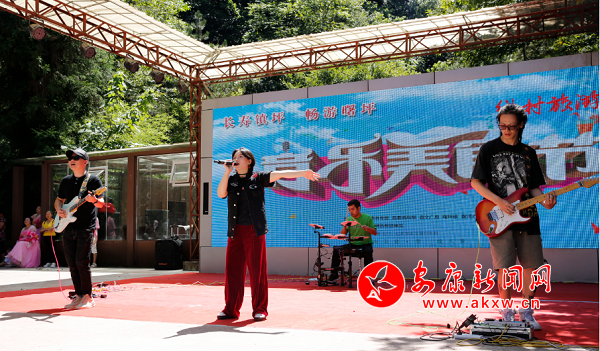 炎炎烈日擋不住游人的熱情,音樂、美食、美景在這里交融,八方來客在這里聚集,共享這一嗨翻全場的聽覺、視覺、味覺盛宴。由聯(lián)合村帶來的獅子舞拉開了文藝演出的序幕,百人旗袍秀、搖滾樂團更是將整場演出推向了高潮。