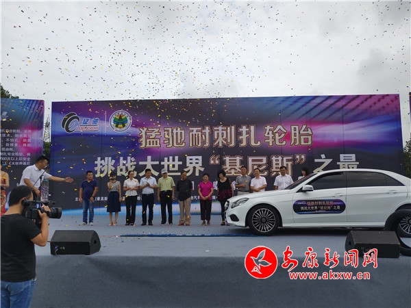 陜西猛馳汽車科技有限公司總經(jīng)理徐曙光介紹,猛馳耐刺扎安全輪胎屬本公司研發(fā)的自主品牌,采用寬途3.0安全技術(shù)、納米高科技,目前是國內(nèi)國際輪胎中技術(shù)最具先進(jìn)且最具安全性能的品牌輪胎。“猛馳”耐刺扎安全輪胎具有不怕扎、防漏氣、防爆胎、自修復(fù)及降胎噪、高舒適和低油耗等多項(xiàng)高品質(zhì)技術(shù)。本次挑戰(zhàn)活動他們將申報(bào)大世界基尼斯之最。