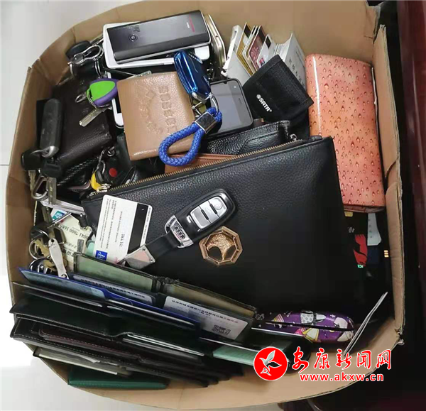 在這間辦公室里,大到嬰兒車、保險(xiǎn)箱、錢包,小到手機(jī)、身份證、眼鏡盒、鑰匙等,工作人員都妥善保管著,等待失主尋回。