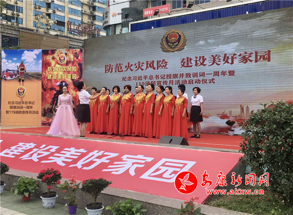 活動現(xiàn)場,相關負責人宣讀“社區(qū)消防宣傳大使”獲評名單并為十名“社區(qū)消防宣傳大使”頒發(fā)了聘書,F(xiàn)場人員先后觀看了大型城市商業(yè)綜合體滅火救援演練短片、成品油庫突發(fā)險情消防救援演練短片。相關消防人員進行了消防救援設備展示,向觀眾展示了消防無人機等消防救援設備。安康市詩詞協(xié)會朗誦藝術社、社區(qū)群眾先后表演了詩朗誦《永恒的信念》和合唱《山丹丹花開紅艷艷 我和我的祖國》。隨后,相關工作人員為現(xiàn)場群眾發(fā)放了消防安全明白卡、消防安全知識手冊等各類消防宣傳資料。