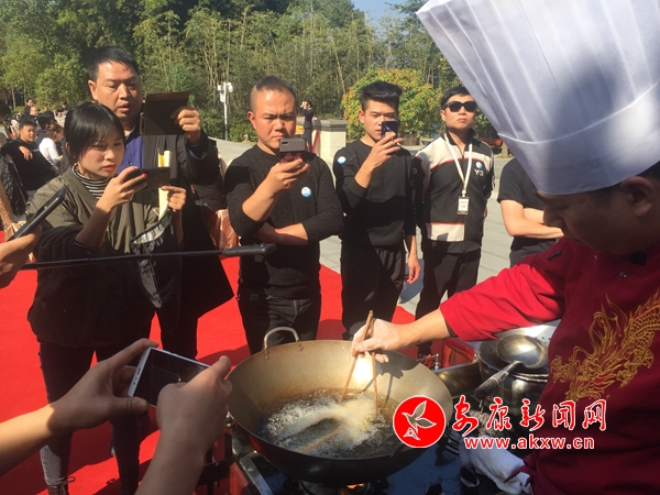 瀛湖酒店魚宴大師現(xiàn)場(chǎng)展示魚宴菜品和廚藝。幾十米長的長桌魚宴,豐富多彩的魚宴菜品,百名游客一邊品吃、一邊拍照,一邊點(diǎn)評(píng)菜品,現(xiàn)場(chǎng)熱鬧非凡,游客對(duì)長桌魚宴的形式以及菜品贊不絕口。