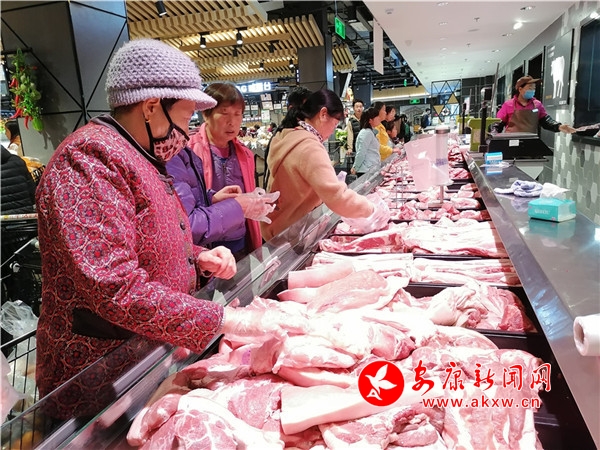 本網(wǎng)訊(實(shí)習(xí)記者 馬娟)“特價(jià)前腿肉23.8元一斤,歡迎新老顧客前來選購。”喜盈門超市廣播著特惠價(jià)格信息,很多顧客聞聲而來,挑選豬肉。“五花肉、前腿肉的價(jià)格比昨天降了3塊錢,這星期豬肉價(jià)格慢慢降下來了。”生鮮區(qū)的員工許連琴說。