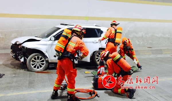 本網(wǎng)訊(記者 張喬)“報(bào)告,接110指令,541國(guó)道151KM+000M處柏枝埡隧道內(nèi)發(fā)生一起小轎車與危險(xiǎn)化學(xué)品運(yùn)輸車發(fā)生追尾碰撞交通事故,可能發(fā)生;沸孤缎孤、燃燒爆炸和人員傷亡”。 為提高國(guó)省干線公路隧道突發(fā)事件應(yīng)急處置能力,檢驗(yàn)干線公路突發(fā)事件應(yīng)急預(yù)案可行性,11月22日,安康公路管理局2019年度干線公路隧道救援應(yīng)急演練在G541線K151+000嵐皋縣柏枝埡隧道舉行。
