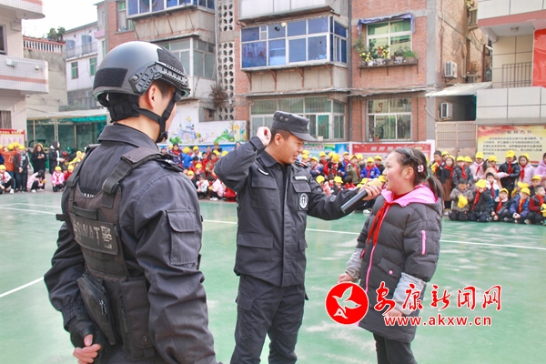 師生們在寓教于樂的過程中,進一步增強了安全防范意識和面對突發(fā)情況的處置能力;顒又,特警們還對校園護校隊的隊員們進行了安全知識培訓,并就防暴盾、防暴叉等安全設(shè)備的正確使用做了詳細講解和模擬演示。