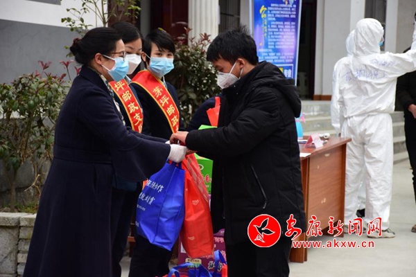 活動現(xiàn)場,白河縣人社部門、中國郵政集團白河縣分公司為赴蘇務(wù)工人員贈送了愛心禮包,預(yù)祝他們平安返崗。