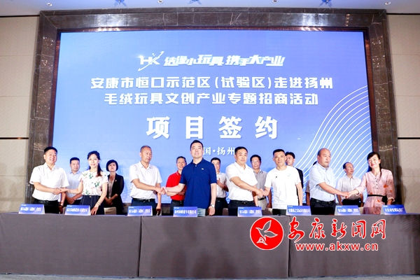 推介會(huì)上,恒口示范區(qū)和市直相關(guān)部門(mén)分別就營(yíng)商環(huán)境、毛絨玩具產(chǎn)業(yè)政策、金融支持政策及重點(diǎn)項(xiàng)目作了推介。恒安玩具有限公司,安康市毛絨玩具文創(chuàng)產(chǎn)業(yè)協(xié)會(huì)負(fù)責(zé)人和揚(yáng)州市工商聯(lián)、市毛絨玩具行業(yè)協(xié)會(huì)、企業(yè)代表分別發(fā)言。現(xiàn)場(chǎng)簽約項(xiàng)目16個(gè),總金額額18.5億元,涵蓋毛絨玩具文創(chuàng)產(chǎn)業(yè)創(chuàng)意設(shè)計(jì)、生產(chǎn)加工、倉(cāng)儲(chǔ)物流和運(yùn)營(yíng)策劃等全產(chǎn)業(yè)鏈條和醫(yī)療康養(yǎng)、現(xiàn)代教育等諸多領(lǐng)域。