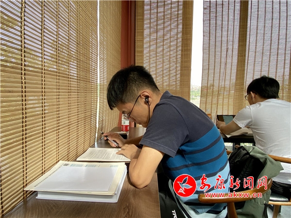 正在龍舟文化園閱讀吧內(nèi)看書的趙浩文是中南大學(xué)大一的學(xué)生,今年暑假他常常泡在閱讀吧學(xué)習(xí),“我一般早上八點(diǎn)鐘過來學(xué)習(xí)看書,中午吃個(gè)飯,然后看書看到下午六點(diǎn)多回家。每天都在學(xué)習(xí)英語(yǔ)知識(shí)以及預(yù)習(xí)大二的一些課程,感覺在閱讀吧學(xué)習(xí)很安靜,而且里面裝有空調(diào),環(huán)境好,F(xiàn)在有些場(chǎng)所恢復(fù)了24小時(shí)的自助服務(wù),也滿足了我們夜間讀書的需求。閱讀吧是我們這些學(xué)生學(xué)習(xí)和備考的理想場(chǎng)所。”