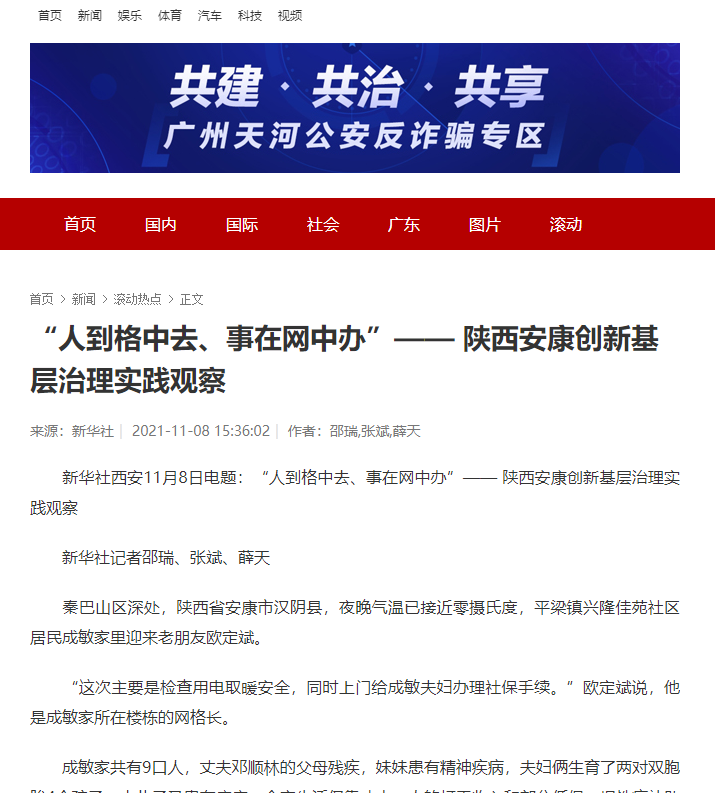 本網(wǎng)訊(實(shí)習(xí)記者 趙漪湉)11月8日,新華社刊發(fā)記者邵瑞、張斌、薛天采寫的稿件《“人到格中去、事在網(wǎng)中辦”——陜西安康創(chuàng)新基層治理實(shí)踐觀察》,聚焦我市創(chuàng)新建立的“321”基層治理模式。