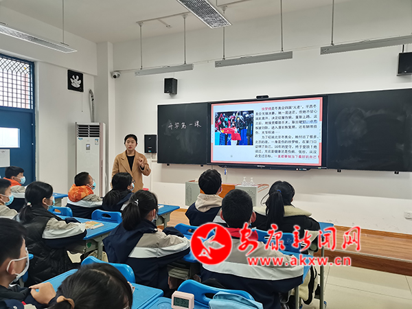 走進(jìn)漢濱初中高新校區(qū)初一年級23班,語文教師劉麗以“‘虎’力全開,做最好的自己”為題,為學(xué)生們帶來了“開學(xué)第一課”。她以經(jīng)典詩歌《做最好的自己》為切入點,隨后通過課件展示了我國冰雪項目運動員谷愛凌、徐夢桃、金博洋等人在冬奧會取得的優(yōu)異成績,深入挖掘成績背后他們拼搏奮發(fā)的冬奧精神,引發(fā)了學(xué)生們熱烈響應(yīng),紛紛舉手表達(dá)自己的觀看冬奧會的感悟體會。