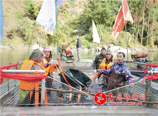 伴隨著生龍活虎的舞獅表演,上午9點(diǎn)30分,起魚儀式正式開始。戰(zhàn)鼓擂擂,響聲震天,起魚手大喊“1、2、3收網(wǎng)”,無數(shù)肥美鮮活的湖魚在網(wǎng)內(nèi)跳躍,引得在場(chǎng)游客陣陣歡呼。在萬眾矚目下,一條身長(zhǎng)90厘米,重達(dá)20余斤的頭魚產(chǎn)生。在隨后的慈善拍賣活動(dòng)中,鎮(zhèn)坪縣鹽道酒店以32999元的價(jià)格奪得頭魚,拍賣所得款項(xiàng)將用于助學(xué)金捐贈(zèng)給貧困大學(xué)生。