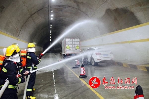 本網(wǎng)訊(記者 張喬) “報告,接110指令,541國道151KM+000M處柏枝埡隧道內(nèi)發(fā)生一起小轎車與危險化學(xué)品運輸車發(fā)生追尾碰撞交通事故,可能發(fā)生危化品泄露泄露、燃……