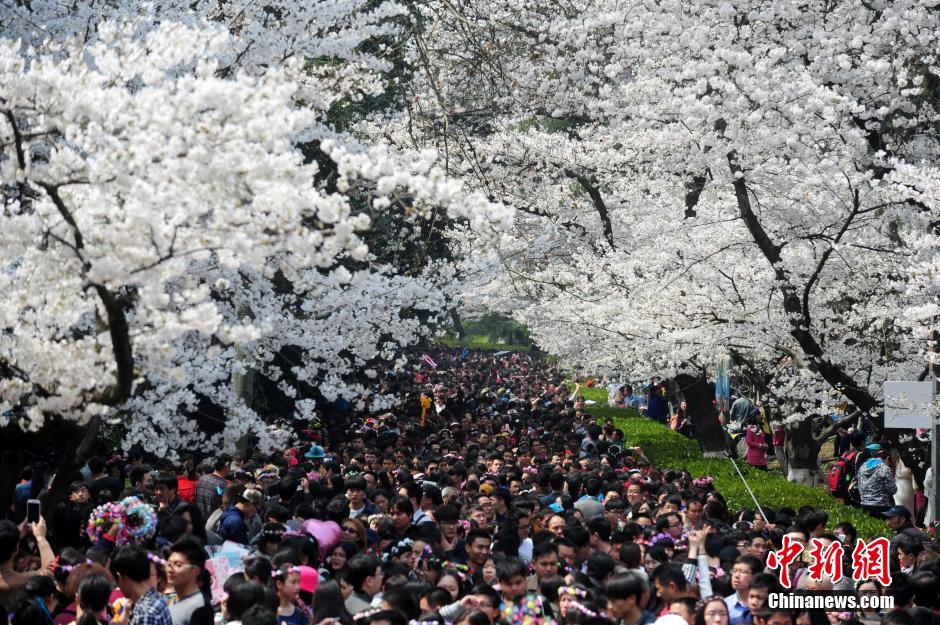 3月21日,武大櫻花盛開游客如織。當(dāng)日,武大櫻花盛開的首個(gè)雙休日。長約200米的櫻花大道上1000多株櫻花競相綻放,吸引著數(shù)萬游客,使寧靜的校園變成了熱鬧的公園。中新社發(fā)張暢 攝Suf安康新聞網(wǎng)