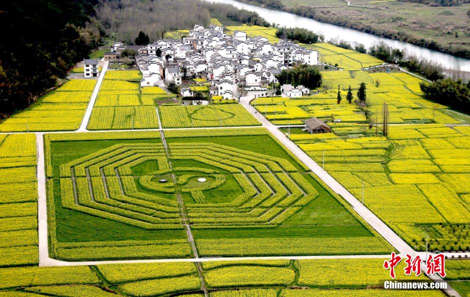3月24日,安徽齊云山油菜花盛開金黃與一個“太極八卦圖”相映成趣。近日,在安徽黃山市休寧縣齊云山腳下南坑村360多畝盛開金黃的油菜花叢中,一個巨型的“太極八卦”圖案層次分明,清晰可見,吸引眾多市民和游客紛至沓來欣賞觀光。中新社發(fā) 施廣德 攝WaQ安康新聞網(wǎng)