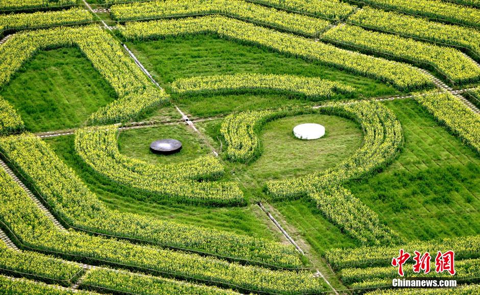 3月24日,安徽齊云山油菜花盛開金黃與一個(gè)“太極八卦圖”相映成趣。 中新社發(fā) 施廣德 攝
