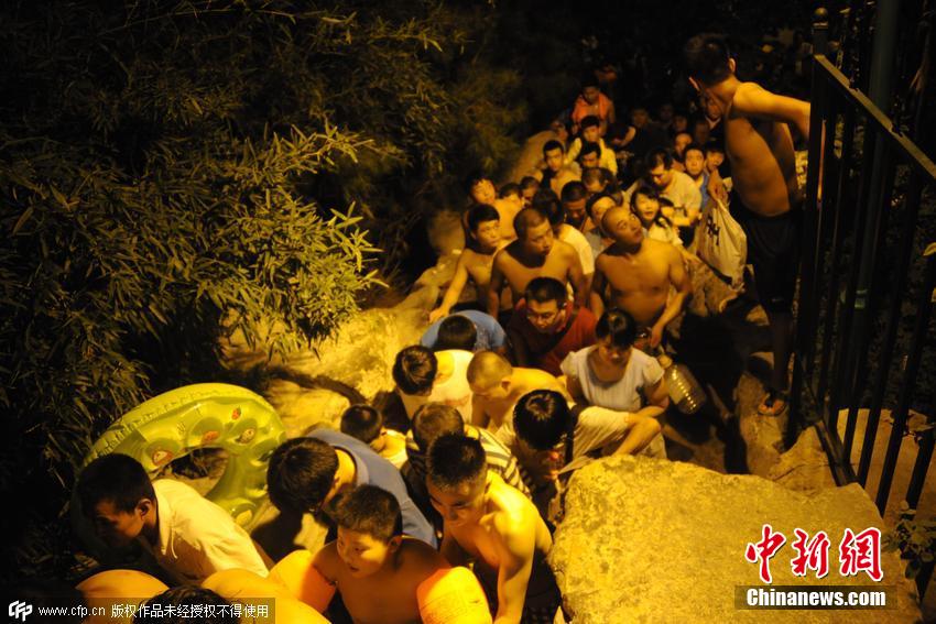2015年07月28日,山東省濟(jì)南市,免費(fèi)泉水浴場(chǎng),吸引數(shù)百人在門外排“長(zhǎng)等待。場(chǎng)面十分壯觀。據(jù)了解,由于濟(jì)南持續(xù)高溫悶熱,這兩天泉水浴場(chǎng)迎來(lái)了今年以來(lái)的最高峰,每天人滿為患,大概日接客近千人。管理方表示,人數(shù)爆滿時(shí)會(huì)適度限制市民進(jìn)入。陳寧 攝 圖片來(lái)源:CFP視覺中國(guó)Z4L安康新聞網(wǎng)