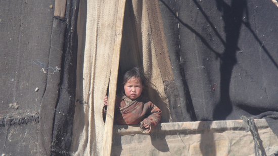 留守帳篷的孩子見(jiàn)到家里之外的人很好奇