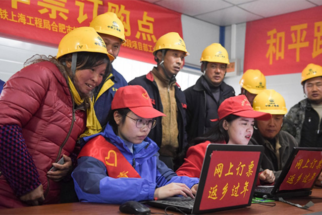 1月3日,志愿者在幫助來自湖北襄陽的黃玉蓮(左一)等網(wǎng)購返鄉(xiāng)火車票。當(dāng)日,春運(yùn)火車票正式開始發(fā)售。為幫助農(nóng)民工順利返鄉(xiāng),安徽合肥市和平路街道當(dāng)涂路社區(qū)組織志愿者到轄區(qū)工地,為外來務(wù)工人員網(wǎng)購返鄉(xiāng)火車票,并現(xiàn)場講解如何利用手機(jī)App購票。新華社記者 張端/攝Njn安康新聞網(wǎng)