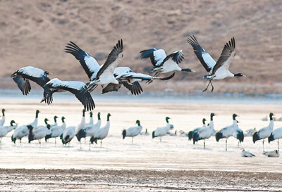林周縣是著名的黑頸鶴越冬地,每年10月中旬開始,有大批黑頸鶴遷徙到此。據介紹,2017年12月,林周縣黑頸鶴數量穩(wěn)定在1700只左右,最高達2000只左右。VSp安康新聞網