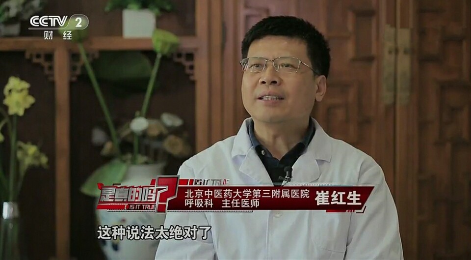 北京中醫(yī)藥大學(xué)第三附屬醫(yī)院呼吸科主任醫(yī)師崔紅生表示:“這種說法太絕對了,是假的!
