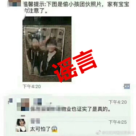 【傳聞】一張兩名女子的照片在全國多地?zé)醾,并配有文字稱“下圖是偷小孩團(tuán)伙照片,家要有寶寶的注意了”“大家注意此二人,這兩個人偷孩子的!物業(yè)已經(jīng)貼了告示。請相互轉(zhuǎn)告...”