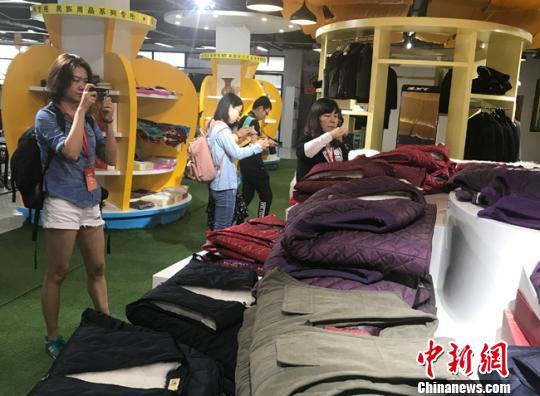在廣河縣電商創(chuàng)業(yè)孵化園中,由當(dāng)?shù)厝嗽凇昂髲S”中制作的服飾在“前店”中受民眾熱捧。艾慶龍攝