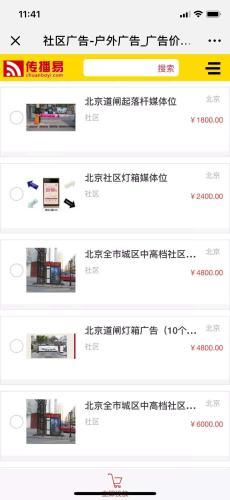 某廣告交易平臺上的社區(qū)廣告報價情況。