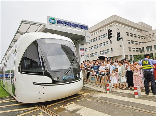 湖北省武漢市省中醫(yī)院門(mén)口,乘客在等待有軌電車(chē)。近年來(lái),當(dāng)?shù)匕训罔F、有軌電車(chē)、公交車(chē)和出租車(chē)站點(diǎn)安排在離醫(yī)院近的地方,讓百姓方便就醫(yī)。 鄭傳海攝