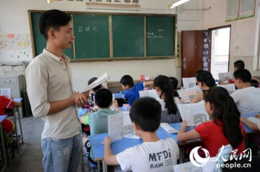 圖為南昌市珠市小學教師杜同師在課堂上給孩子們上語文課