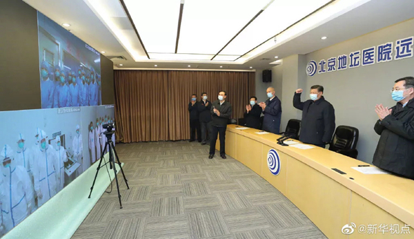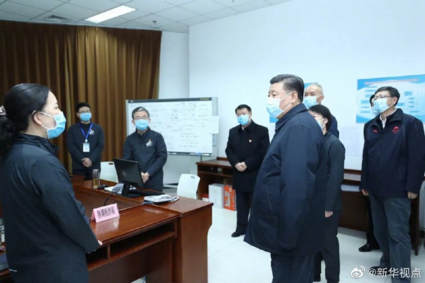 10日下午,習(xí)近平來(lái)到北京地壇醫(yī)院,察看新冠肺炎感染者住院診療情況,視頻連線(xiàn)武漢市重癥患者收治醫(yī)院,聽(tīng)取中央指導(dǎo)組、湖北指揮部有關(guān)情況匯報(bào),慰問(wèn)奮戰(zhàn)在一線(xiàn)的醫(yī)務(wù)工作者。隨后,習(xí)近平前往朝陽(yáng)區(qū)疾病預(yù)防控制中心,了解朝陽(yáng)區(qū)開(kāi)展應(yīng)急處置、流行病學(xué)調(diào)查、篩查報(bào)告和北京市疫情防控工作情況。