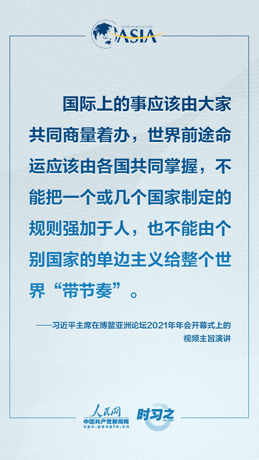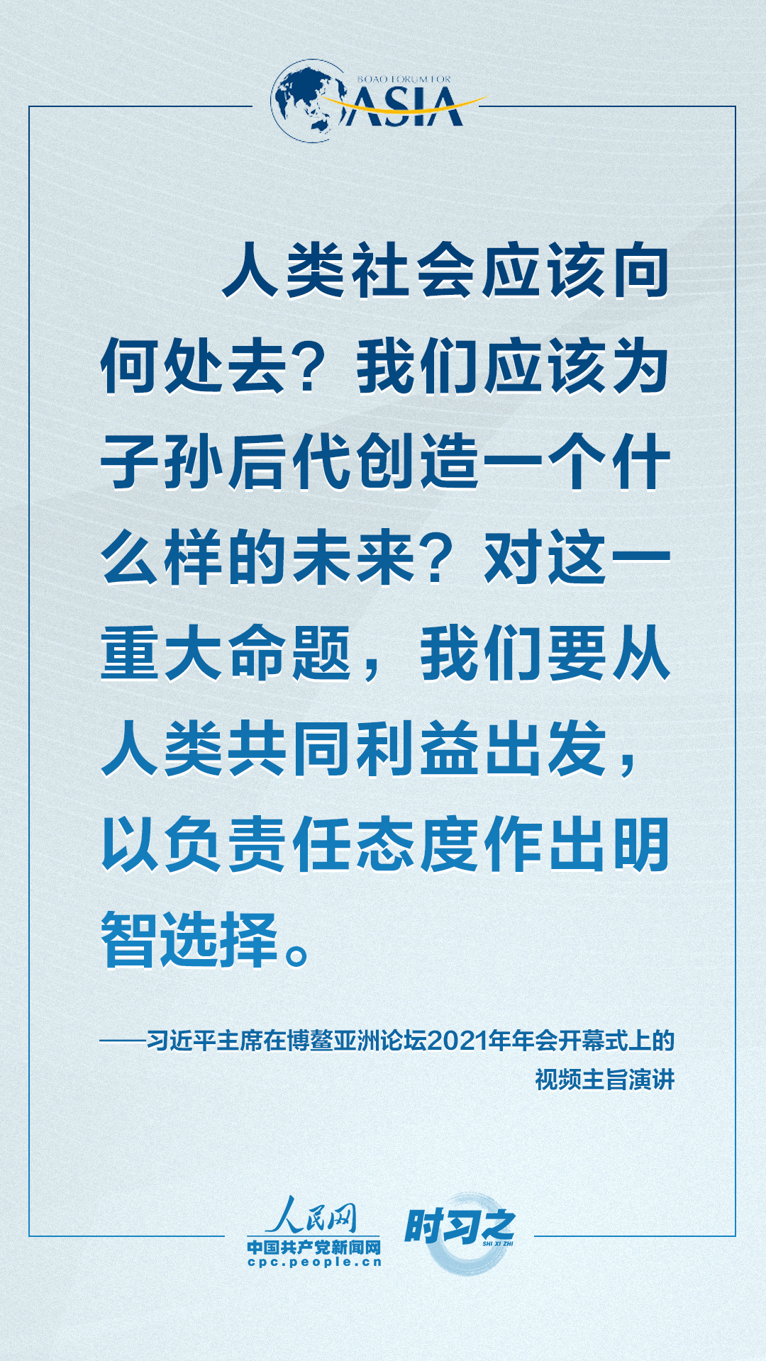 4月20日上午,博鰲亞洲論壇2021年年會(huì)開幕式在海南博鰲舉行,國(guó)家主席習(xí)近平以視頻方式發(fā)表題為《同舟共濟(jì)克時(shí)艱,命運(yùn)與共創(chuàng)未來(lái)》的主旨演講。面對(duì)“人類社會(huì)應(yīng)該向何處去?我們應(yīng)該為子孫后代創(chuàng)造一個(gè)什么樣的未來(lái)?”的重大命題,習(xí)近平這樣對(duì)世界說(shuō)。qTz安康新聞網(wǎng)