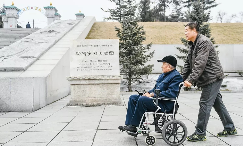 徐振明是吉林省通化市革命烈士陵園管理所首任所長,現(xiàn)年96歲。他先后參加過抗日戰(zhàn)爭、解放戰(zhàn)爭,1950年參加抗美援朝戰(zhàn)爭,曾榮立多次戰(zhàn)功。他退伍轉業(yè)到楊靖宇烈士陵園工作,父子兩代默默守護英雄陵墓60余年,身體力行保護革命遺跡,講述英雄故事,弘揚革命精神。圖為徐振明(左)和兒子徐永軍來到楊靖宇烈士陵園。 新華社記者 王昊飛/攝