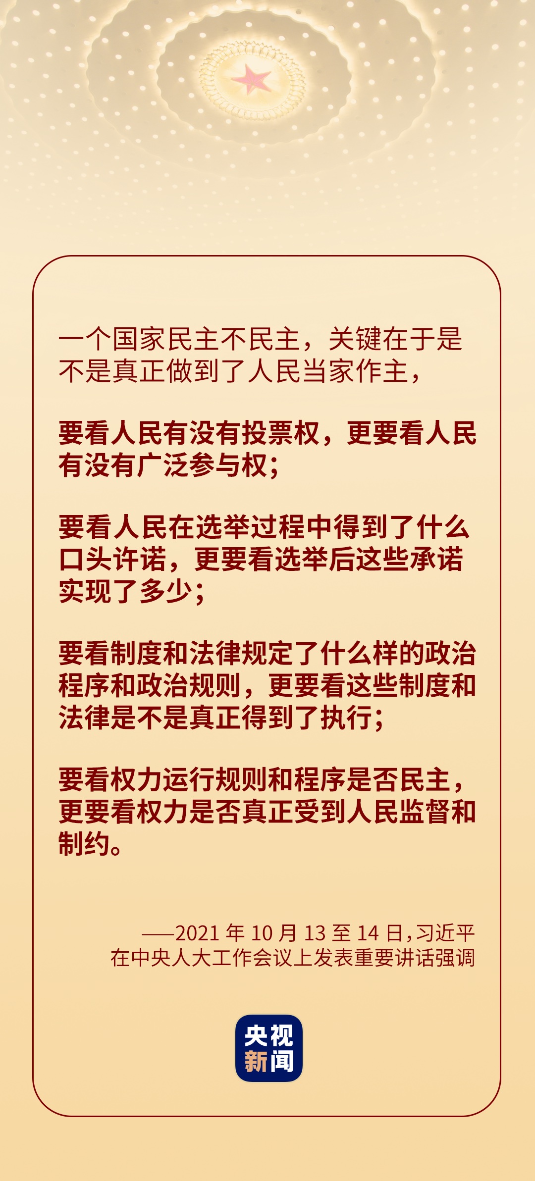“黨的十八大以來(lái),我們深化對(duì)民主政治發(fā)展規(guī)律的認(rèn)識(shí),提出全過(guò)程人民民主的重大理念。”在中央人大工作會(huì)議上,習(xí)近平全面闡釋了“全過(guò)程人民民主”的深刻內(nèi)涵——實(shí)現(xiàn)了過(guò)程民主和成果民主、程序民主和實(shí)質(zhì)民主、直接民主和間接民主、人民民主和國(guó)家意志相統(tǒng)一,是全鏈條、全方位、全覆蓋的民主,是最廣泛、最真實(shí)、最管用的社會(huì)主義民主。