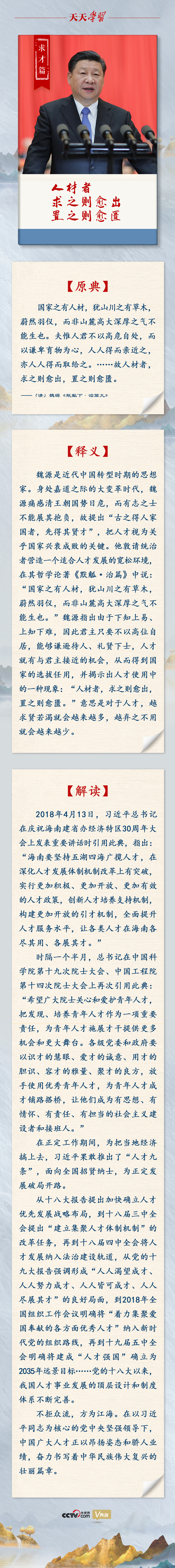 編者按:中央人才工作會(huì)議9月27日至28日在北京召開,習(xí)近平總書記出席會(huì)議并發(fā)表重要講話。黨的十八大以來,總書記站在黨和國家事業(yè)發(fā)展全局的戰(zhàn)略高度,對(duì)我國人才事業(yè)發(fā)展作出一系列重要指示。在講話和文章中,他大量引用有關(guān)中國古代人才思想的典故,就如何選才、敬才、求才、育才、用才等話題,提出了一系列新思想、新觀點(diǎn)、新論斷、新要求,為新時(shí)代做好人才工作提供了根本遵循和行動(dòng)指南。《天天學(xué)習(xí)》帶您一起學(xué)習(xí)回顧。